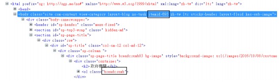 (3)所以就希望,麵包屑或其上層容器能針對不同的選單頁面,而能有自己專屬的自定義類別: