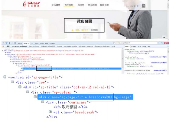 (1)麵包屑因為底圖不同造成風格需要再調整,但因為容器類別均一致導致設定個別CSS樣式不易。