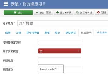 (3)選單的頁面類別就可以在自定義後,讓該頁面麵包屑有專屬的自定義類別: